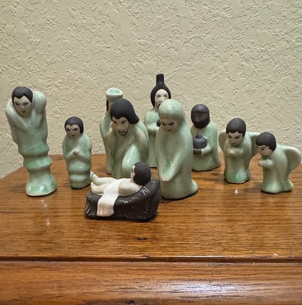 Handcrafted 10 pc Celadon nativity scene with unique design made in Thailand ** Like new condition