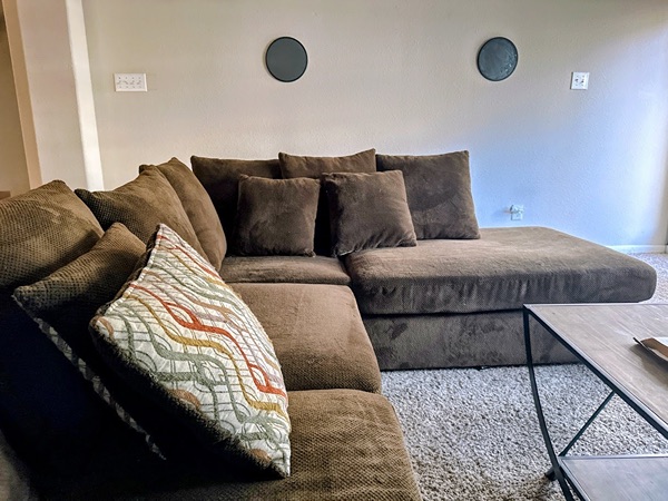 I turn the loveseat side to face the kitchen.