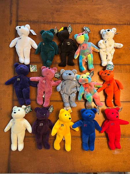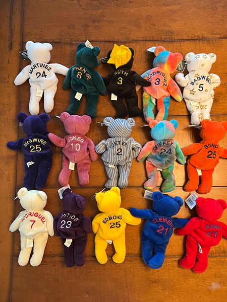 Lot of 15 Bamm Beanos, stuffed toys from the 1990s. Each bear is a different baseball player, You can see their names and numbers if you look closely. They all have their original tags and are in mint condition. I'll meet you in The Woodlands area to deliver them. Great deal at $100 for all of them. Cash please. Thanks for looking