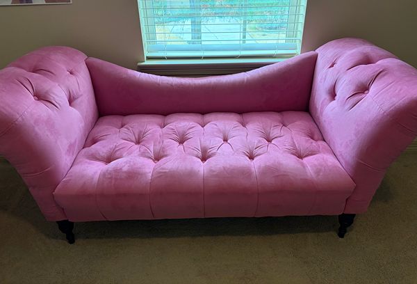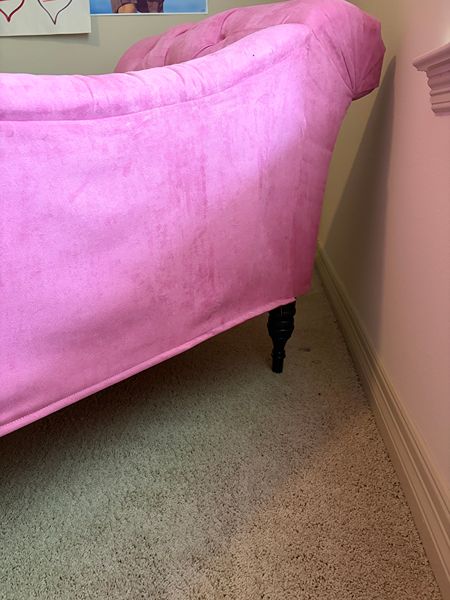 This microsuede loveseat is in perfect condition. The only thing placed on this couch has been a few decorative pillows! It is 69 inches slong, 30 inches tall, and the arms are 27 1/2 deep.