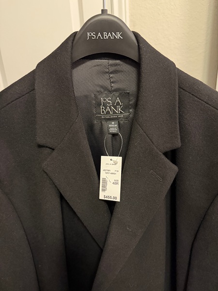 Jos. A Banks Brand New Coat - Black - Size 48R