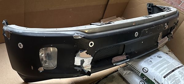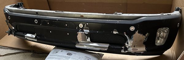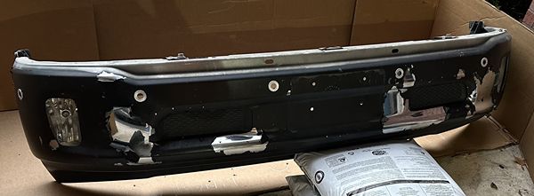 2016 Ram Front Bumper in good condition. I replaced the stock bumper with a heavy duty bumper and don't need the original. The bumper is chrome but the previous owner painted it with black plasti-dip--you can see in the pictures that is peeling off. The plasti-dip can be removed for a completely chrome bumper or you can re-paint black. Bumper has holes for sensors and wiring for two bumper lights (both intact). Free