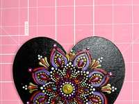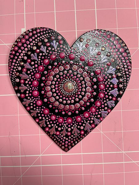 Be Mine Forever 6” Heart Magnet Mandala Painting Black Red and Purple and Pink Fridge Art Decor Paint
