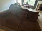 Brown 2 piece Sectional with 4 small Pillows that can be covered to any color.