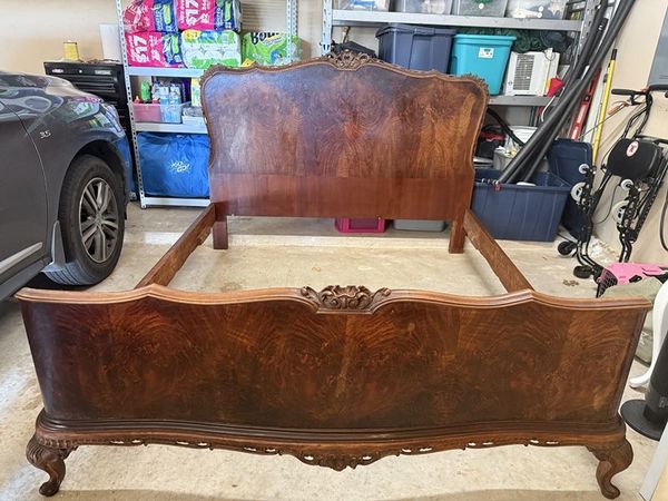 Louis XV Queen Size Burl Wood Walnut Antique Bed