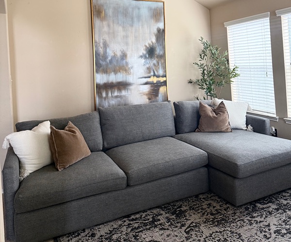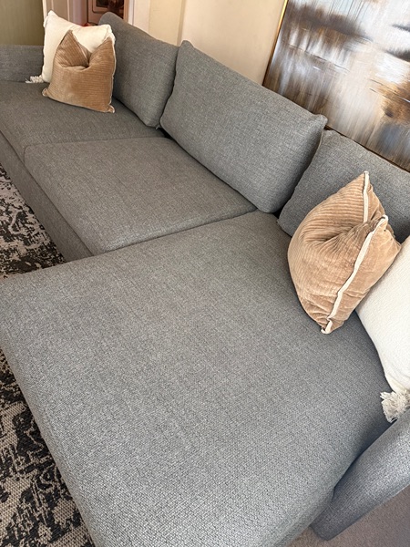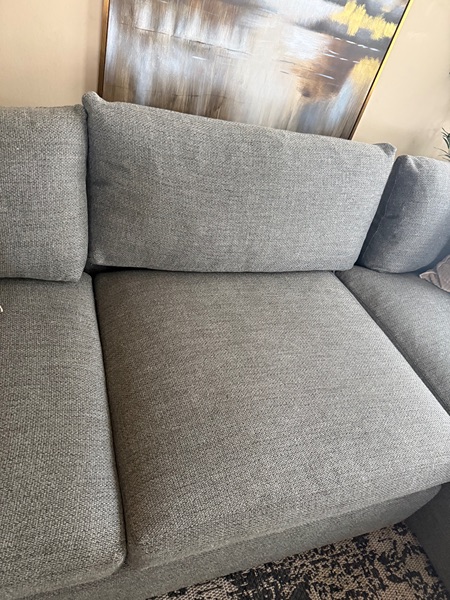 This is the “Lounge Chaise” from Crate & Barrel. (Right hand facing) Super comfortable, deep seating sectional. Normal wear. No tears or stains. Just been shampooed. Feather blended cushions. All cushions covers unzip for a good wash.