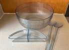 This item is a vintage Tupperware Preludio acrylic salad/snack punch bowl set in clear blue.