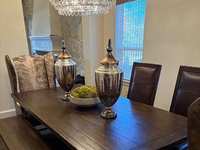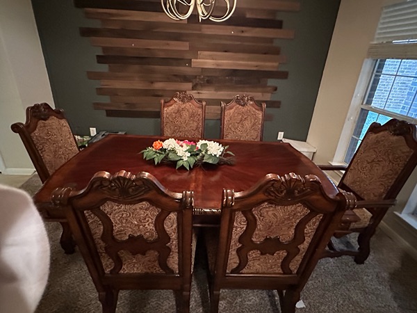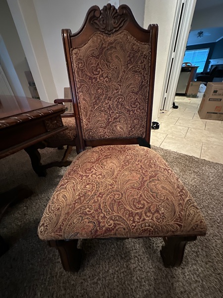 Beautiful Queen Anne Solid Wood Dining Table with 4 side chairs and 2 arm chairs.  Comes with 2 Leafs for extra seating.