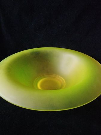 Vintage Fenton Art Glass Co. Iridescent Uranium Stretch Glass Console or Centerpiece Bowl, Vaseline Glass,11in D.