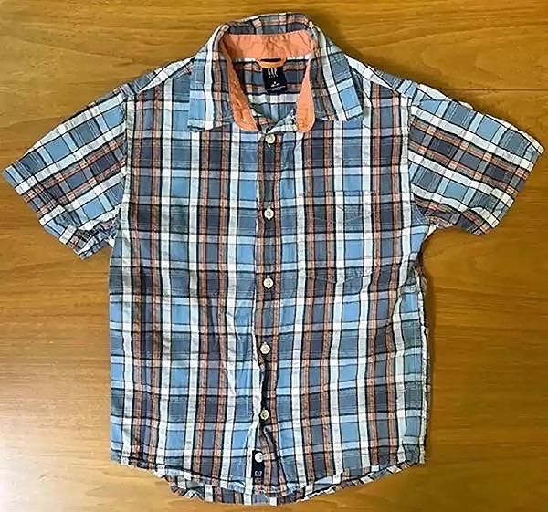 100% cotton, front pocket, shirt has a nice weight to it…$8