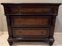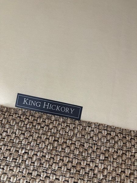 King Hickory upholstered 3 cushion sofa purchased at Bartholet Home Furnishings. Fully upholstered back with nail-head trim and arm rest covers. Great condition from non-smoking, pet free home. Size: 84" long x 41" high. Accent pillows included if desired. $650. Located in Lakes at Creekside (Kuykendahl/Hufsmith Rd. near Aldi's).