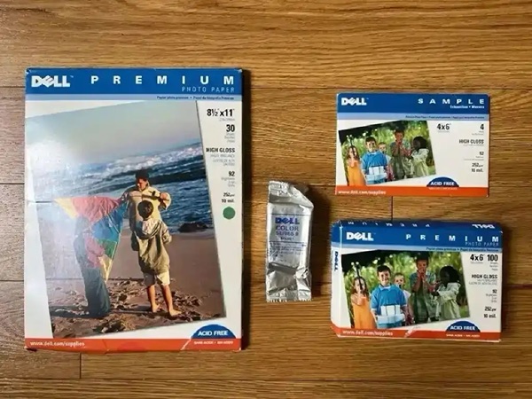 Includes 8.5x11 30 sheets, 4x6 80 sheets, 4x6 4 sheets sample, and Dell Color Series 9 ink…$15 firm