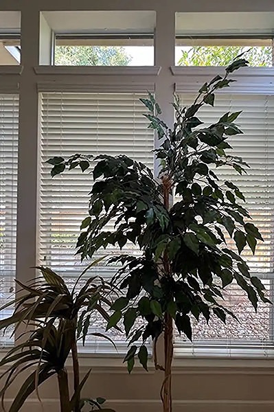 Two artificial trees plants in wicker baskets. Tallest one (7’+) has little bird in nest and the shorter one is about 4’ tall…$50, total, firm