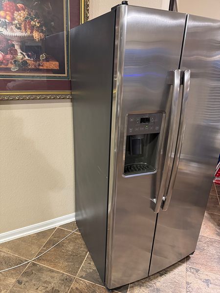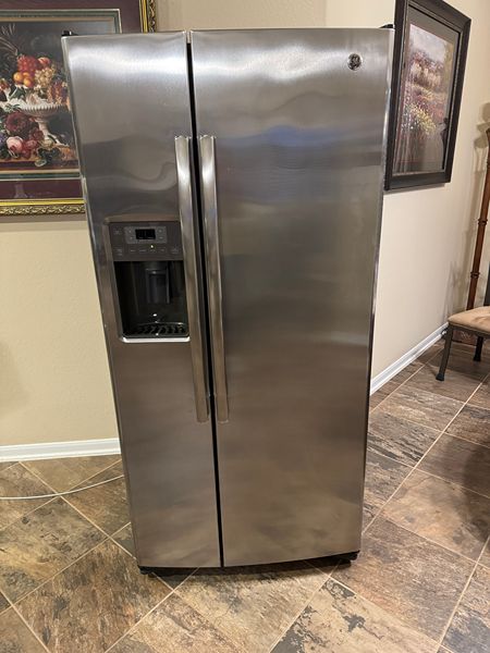 GE SIDE BY SIDE REFRIGERATOR 23.2 CU.FT LIKE NEW CONDITION. 33IN WIDE, 35IN DEEP, 69.75IN TALL. EVERYTHING IN LIKE NEW CONDITION... WATER AND ICE DISPENCER SERVES WATER AND ICE LIKE CRAZY.LIKE NEW CONDITION...