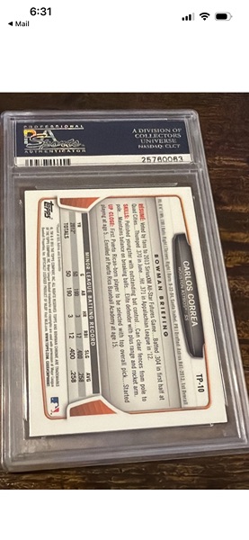 Carlos Correa, Bowman, chrome pro prospects, rookie card gem mint 10 PSA