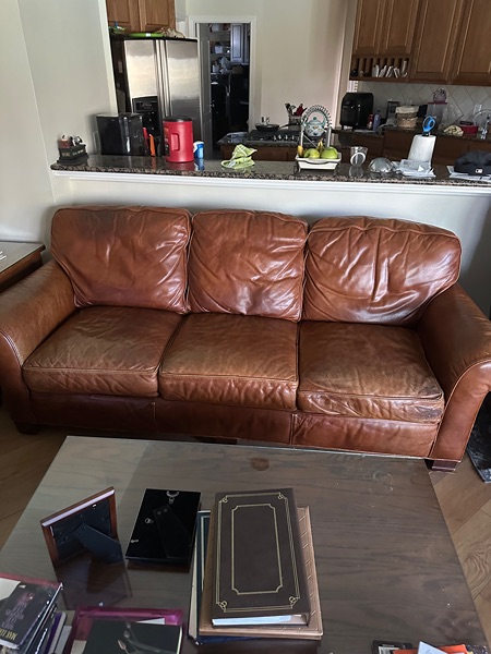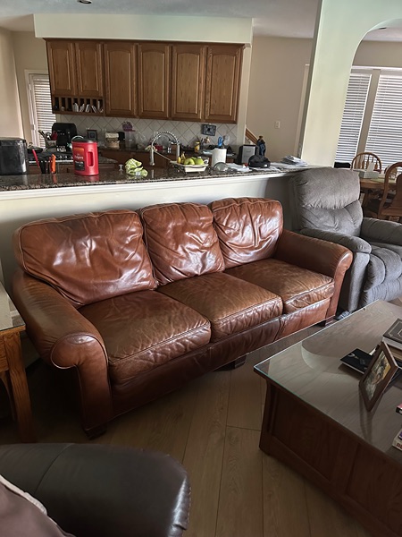 Leather couch, no rips of tears, nornal wear. Asking $100