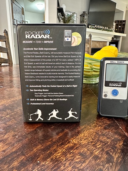 Radar detector for sports and pitching. Used for batting practice. In great condition with instructions and carrying case and box.