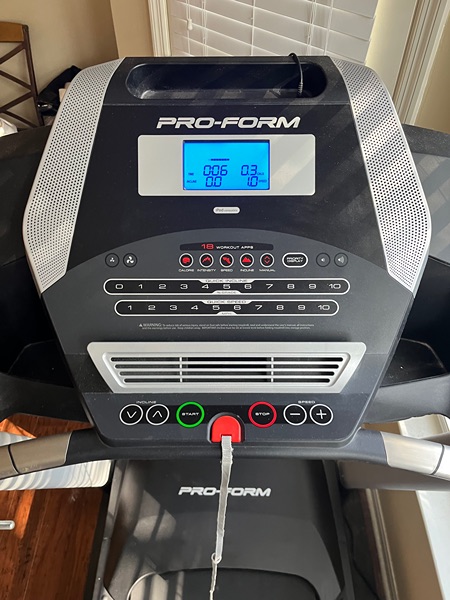Proform ZT6 treadmill. Folds up when not in use. Rubber floor mat included. Has 18 preset programs. Speed range 0-10. Incline 0-10. Weight capacity 325 lbs. Due to several surgeries, this was barely used. Need to sell.