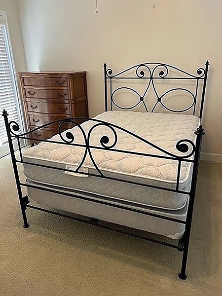 Elegant Pottery Barn wrought iron bed… frame, headboard, footboard with mattress and box spring included! Was used in a guest room. Full size, complete bed set, ready to go!…$500 firm