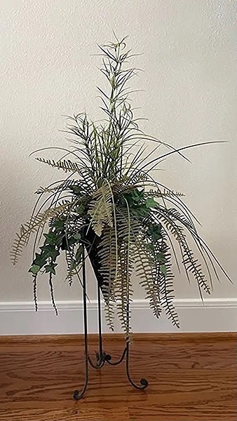 Artificial plant with metal stand, perfect for home decor. Approx. 34” tall x 20” wide…discounted to $10 firm