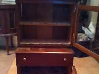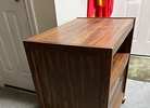 Wooden, rolling utility cart with cabinet. Nice paneled side that you may be able to reverse. Just needs a wipe down…$40 firm