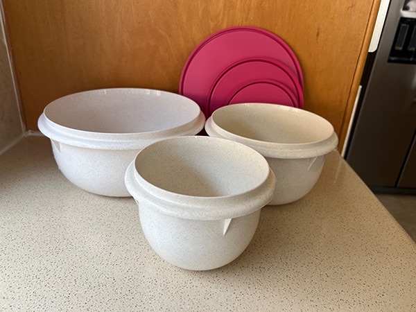 Set of Tupperware mixing & storage bowls with lids. Great condition!…$20 firm
