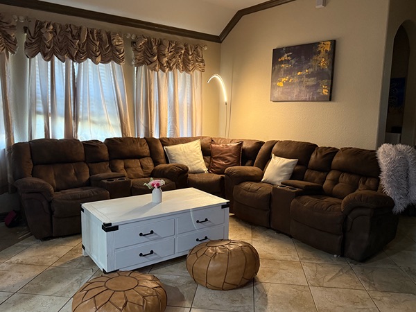 This set still sells at Gallery Furniture. Additional pieces could be purchased to create rowed theatre seating.