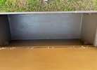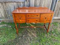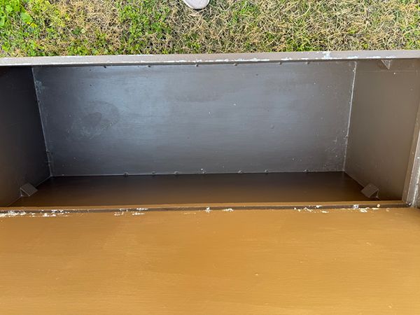 Solid wood very sturdy with storage underneath. Just needs paint.
