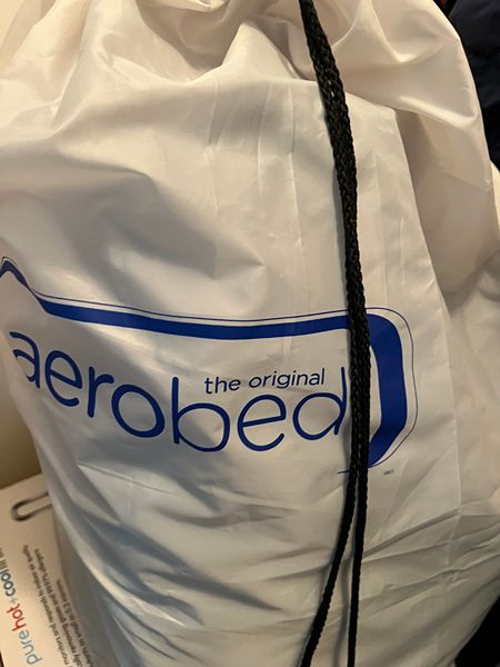 The Aerobed Air Mattress is a high-quality inflatable mattress designed by Aerosoft. This full-sized air bed is easy to inflate that has an electric pump and provides a comfortable sleeping surface for guests or visitors. Dimentions: 14” high, 74"L x 54"W and has an automatic shut off pump & carry bag. Used once - like new condition.