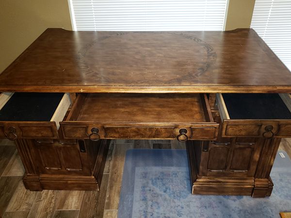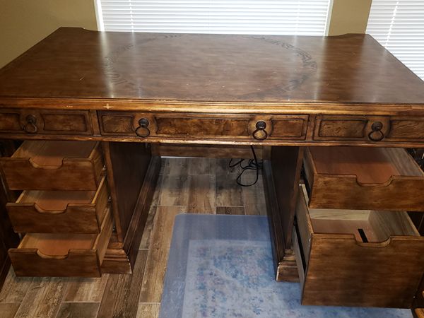 Beautiful solid wood desk. Solid oak executive desk. Minor blemishes, still in good condition. Dimensions in photos. Only asking $650 obo. Make an offer if interested!