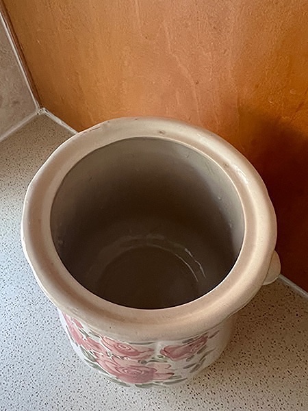 Ceramic utensil crock by Gibson. Approx. 8 1/2” tall and wide. No chips or cracks!…$12 firm