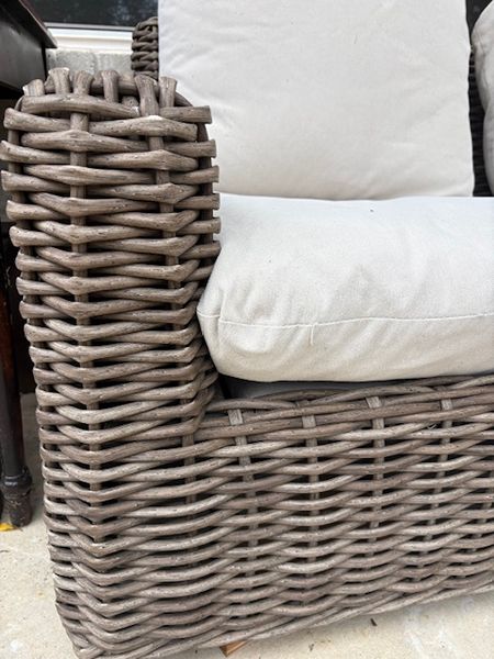 Maitland Wicker Outdoor Sectional W / Tan Cushions & Wicker Frame