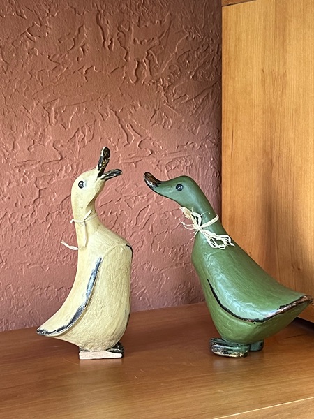 Set of two hand-painted wooden ducks with ribbon accents. Vintage Smith & Hawkins ducks…$40 firm