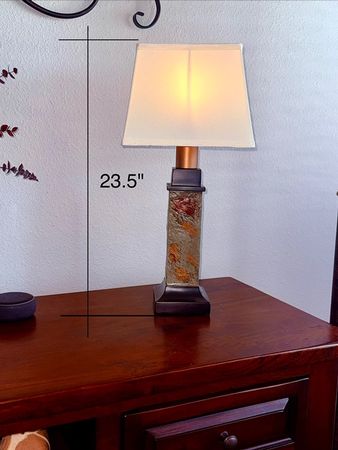 Wireless 3Way Lamp. Heavy metal base boasting a subtle copper like patina texture. Great for emergency lighting for our frequent power outages. P/U Carriage Hills Dr/1488.
