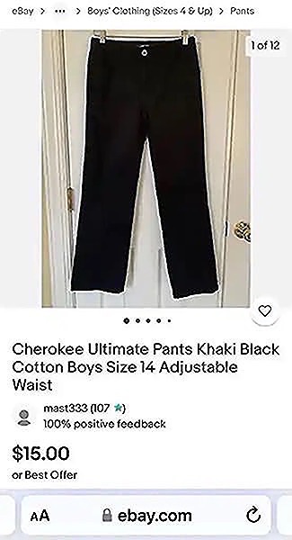 Boys black pants Ultimate Khaki by Cherokee size 7…$10 firm