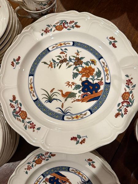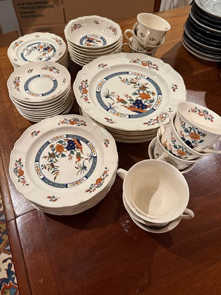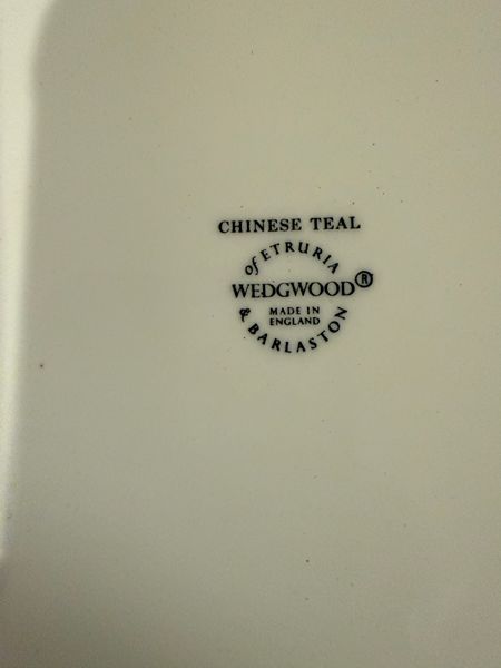 10 complates place settings of Wedgewood Bone China - Chinese Teal pattern. Includes dinner plates, salad plates (8 and 1/2"), desert plates (6 and 1/2"), bowls. and cups and saucers.