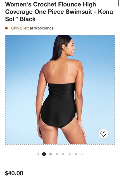 Brand is Kona Sol, size small (4-6). Bandeau style with crochet ruffle, adjustable and removable straps, sewn in cups, high coverage. New with tags, smoke free home. $10
