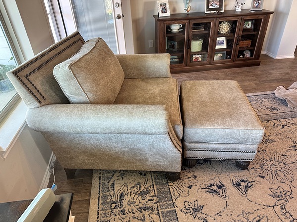 Oversized Chair and ottoman. Bought at Gallery Furniture. Microfiber material all hard wood.