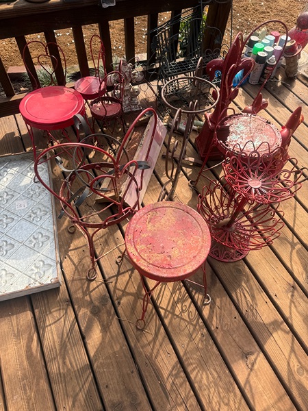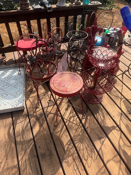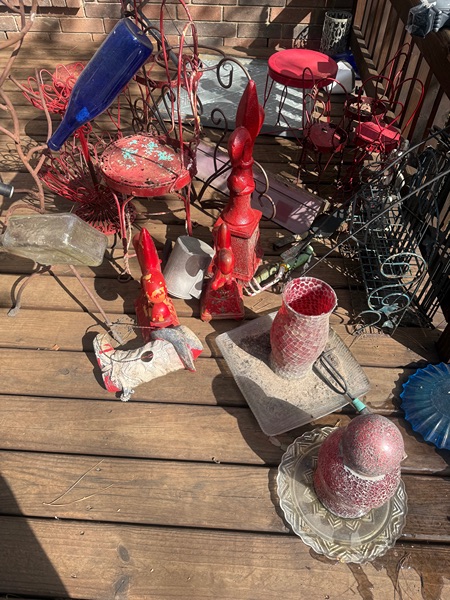 Free yard art/decorations. Some are rusted but can be repurposed. Hopefully someone will want or in the garbage they go.