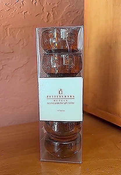Set of six amber colored glass tealight holders from Pottery Barn Outlet. New!…$15 firm
