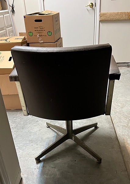 Mid-century Swivel Office Chair Vintage 1950’s!  Metal frame with brown upholstery.  Needs tlc but this classic is worth it!…$50 firm