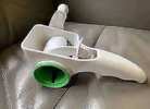 This Tovolo Garlic Slicer takes the work out of slicing garlic perfectly. The rotating blade cuts beautifully consistent slices. Now you can evenly season your favorite dishes with a garlic flavor that's equally savory bite after bite!