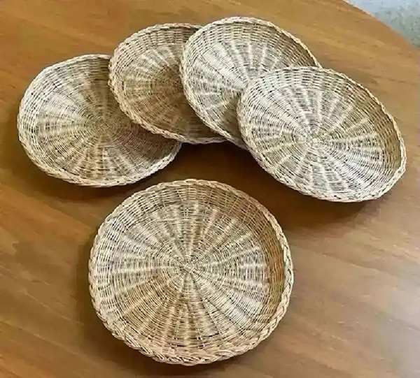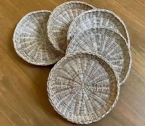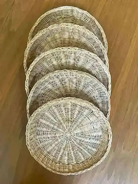 Five wicker paper plate holders, about 10” in diameter…$8 total, firm