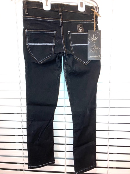 Boys size 8 black skinny jeans from Stylo Dnm Engineering brand. Features 5-pocket design, button/zip closure, and light contrast stitching. New with tags from smoke free home. $12