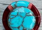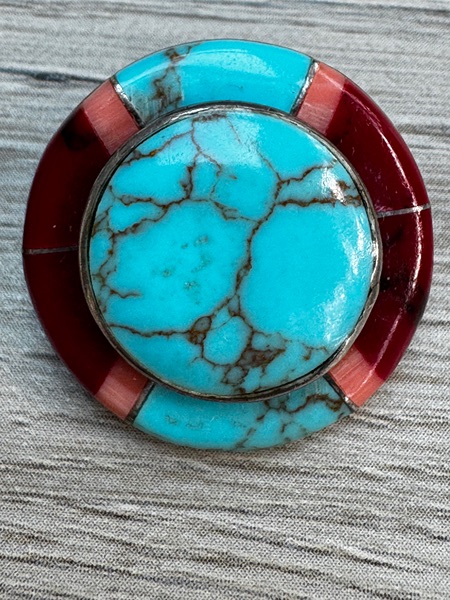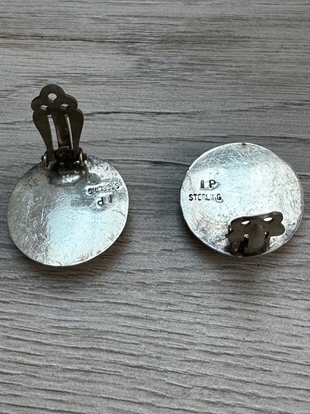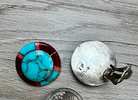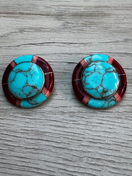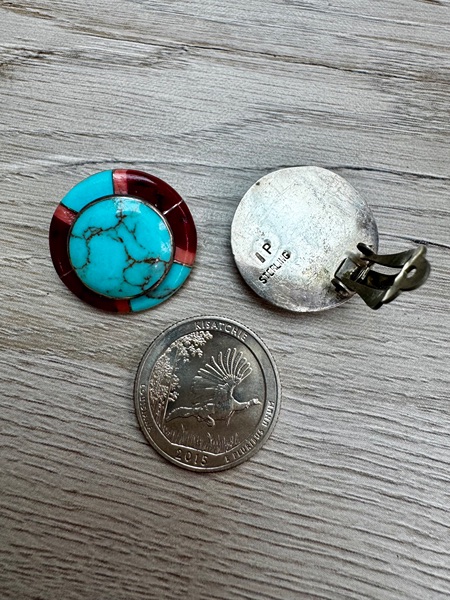 Irene Platero clip on turquoise and coral stone button earrings set in .925 sterling silver