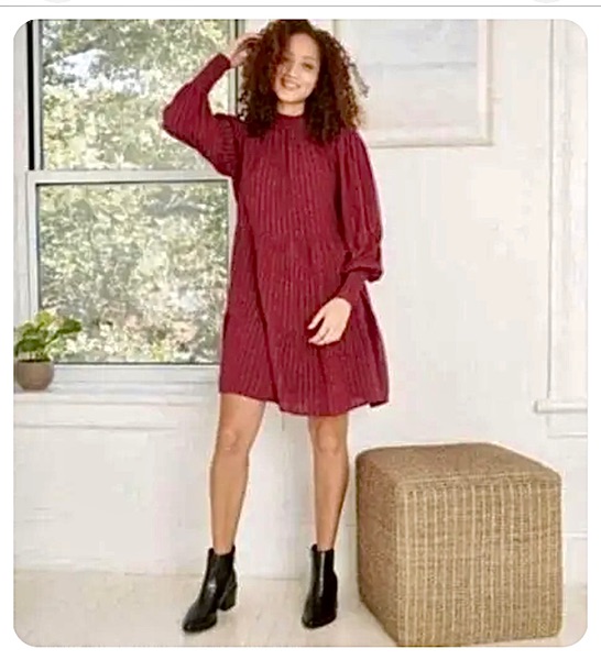 Brand is Knox Rose, size XS. New with tags from smoke free home. Bishop sleeves, lightweight fabric, tiered design, smocked cuffs, high neck, metallic stripes. $10