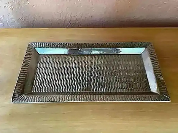 Silver textured ceramic tray