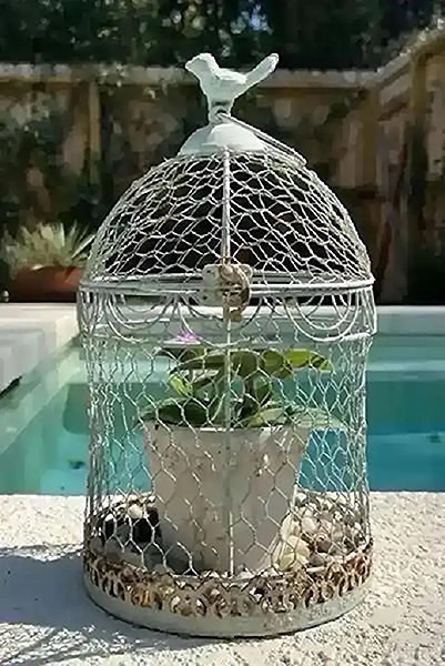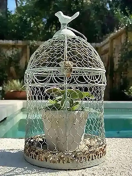Decorative Birdcage with Live Plant