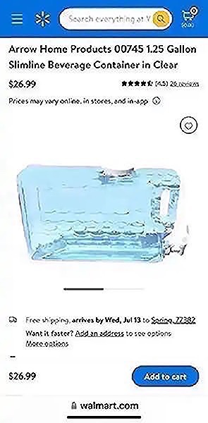 Perfect for the fridge! Holds 1.25 gallons! New! 16” x 10”. Last pics shows similar item…$10 firm