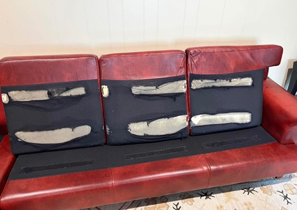 No rips or stains. Just the bottom cushions filt is ripped from the Velcro but can't see it since it's flipped.